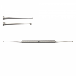Curette 5,5 pouces à double extrémité avec trous de 1,5 mm et 2,5 mm