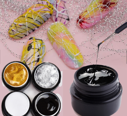Le spidergel est un gel élastique qui permet de réaliser des lignes plus ou moins épaisses, droites, ou des courbes et de créer des formes géométriques, sans bavures et en toute facilité.